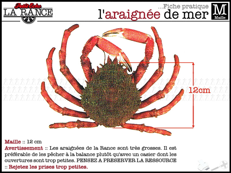 Cette pêche concerne surtout la partie de l’ouest et nord cotentin et plus particulièrement la partie de la baie de granville où les araignées sont particulièrement abondantes lors de leur migration de printemps : 500 à 700 tonnes y seraient pêchées chaque année, dont une section par la pêche récréative, sans compter la création des îles anglo- normandes ( 400 – 500 tonnes ) .
